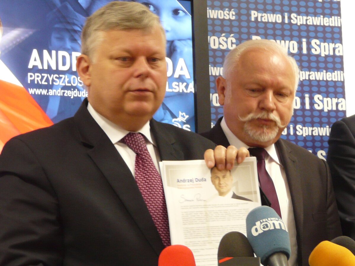 Podczas konferencji prasowej poseł Suski zaprezentował także list kandydata na prezydenta do Polaków. Andrzej Duda deklaruje w nim powstanie miejsc pracy, przywrócenie wieku emerytalnego, obronę polskiej ziemi przed wykupem przez cudzoziemców. Obiecuje też, że nie dopuści do reprywatyzacji Lasów Państwowych, będzie prowadził dialog ze wszystkimi obywatelami, bo będzie prezydentem wszystkich Polaków, a nie reprezentantem określonych grup interesów.
