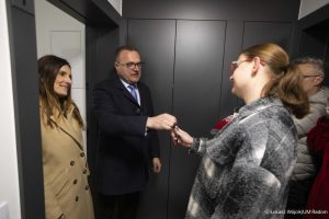 Pierwsi najemcy odebrali dzisiaj klucze do mieszkań w nowym bloku na Michałowie, wybudowanym przez gminę. Symbolicznego aktu dokonali prezydent Radosław Witkowski i wiceprezydent Marta Michalska-Wilk.