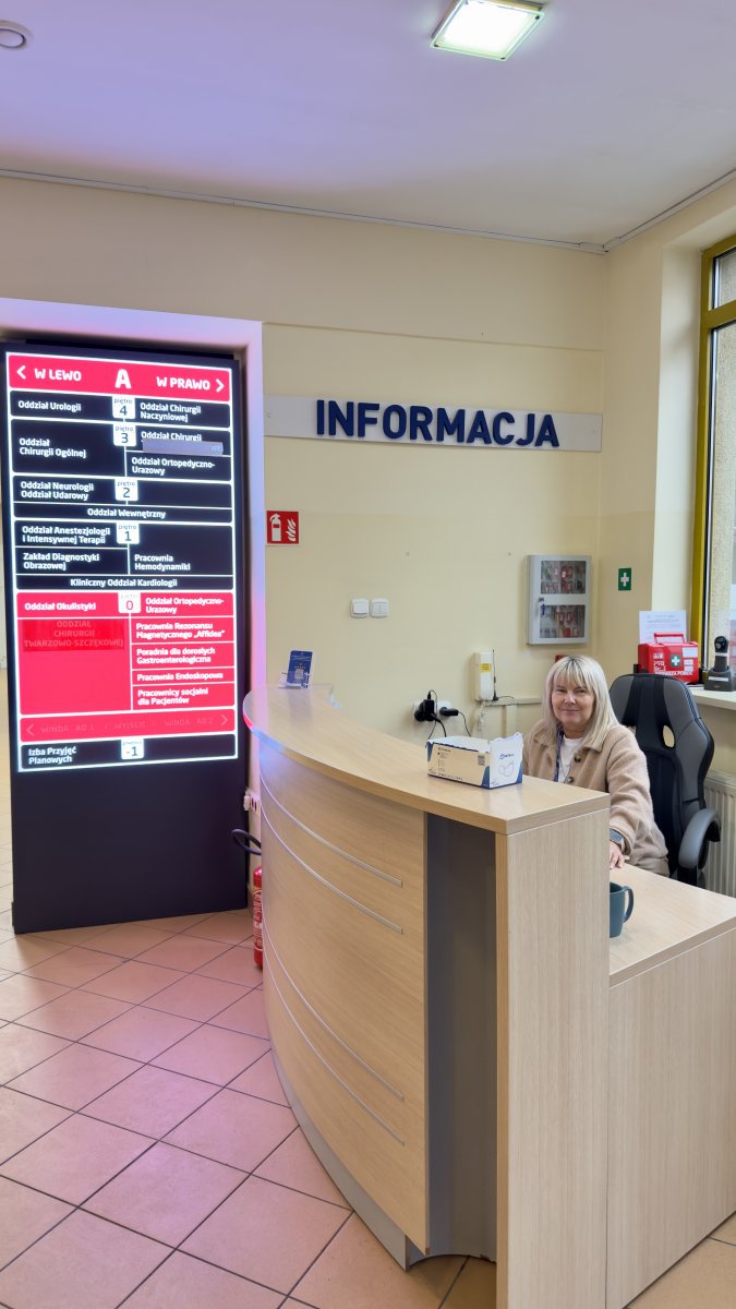 W głównym budynku, tuż obok punktu informacji, znajduje się podświetlany pylon prowadzący pacjentów do celu. W budynku poradni specjalistycznych zamontowano oznaczenia wewnętrzne, dokładnie wskazujące, na które piętro należy się udać. Dodatkowo szpital zadbał o widoczność po zmroku – oprócz efektownego napisu na budynku, przy wejściu znajduje się podświetlany pylon informacyjny.
