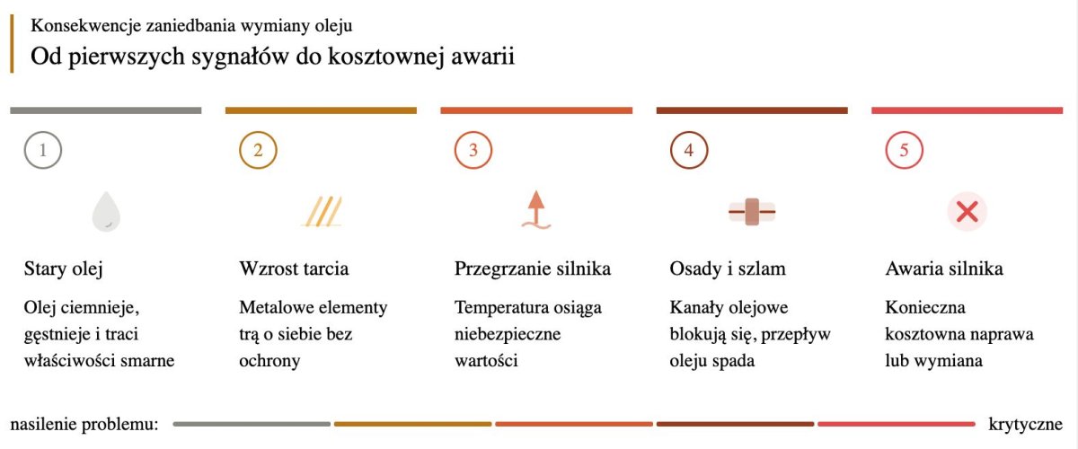 Warto pamiętać, że według danych CEPiK i IBRM Samar, średni wiek samochodu osobowego w Polsce na koniec 2024 roku wynosi ponad 16 lat, a więcej niż 70 proc. aut na polskich drogach ma co najmniej 10 lat. Starsze silniki są bardziej wrażliwe na opóźnioną wymianę oleju – ich uszczelki i prowadnice mają większy luz, a olej szybciej traci właściwości.