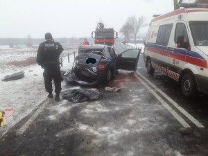 Tragiczny wypadek na drodze krajowej nr 79 w Ostrówku pod Warką. Zderzyły się czołowo peugeot ze skodą fabią, w którą następnie uderzyła ciężarówka scania. Na miejscu zginęło małżeństwo.