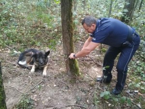 Pies zaplątał się we wnyki zastawione z lesie w Otalążce (powiat grójecki). Dzielnicowy z posterunku w Mogielnicy uwolnił zwierzę odplątując stalową linkę owiniętą wokół szyi czworonoga. Pies wrócił do właściciela.