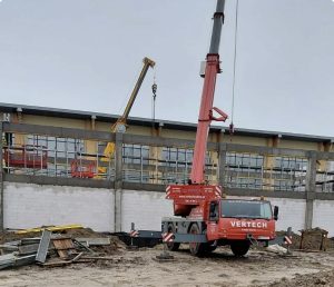 Trwają prace przy rozbudowie hali widowiskowo-sportowe Uniwersytetu Radomskiego przy ul. Chrobrego. Po ponad dwóch miesiącach od rozpoczęcia robót gotowe są już ściany zewnętrzne budynku nowej sali gimnastycznej. Na realizacje inwestycji uczelnia pozyskała 7,5 mln zł z Ministerstwa Nauki i Szkolnictwa Wyższego.